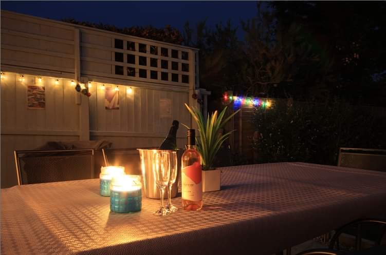 The lounge has comfortable seating for up to 8 people and a large freeview smart TV and DVD player. Fully folding doors lead from the lounge to the good size, south facing, secure rear garden with large patio area, BBQ, table and seating, perfect for al fesco dining and relaxing. Beyond and to the side of the dining patio is mainly grass with flower borders.